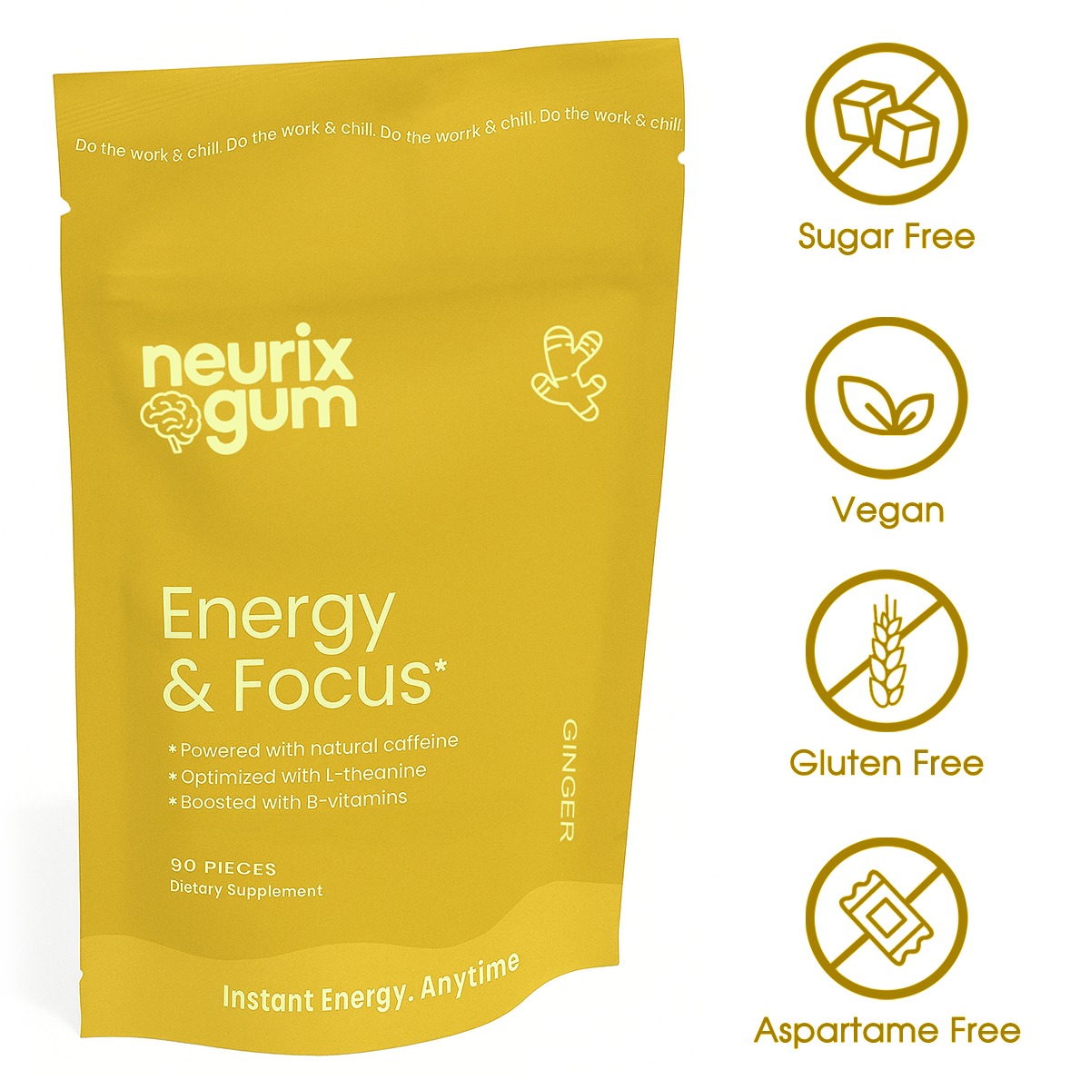 NeurixGum Ginger Chewing Gum features a naturally bold, gently spicy flavor in a smooth, plant-based formula made for everyday enjoyment.