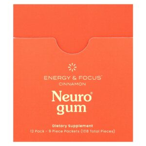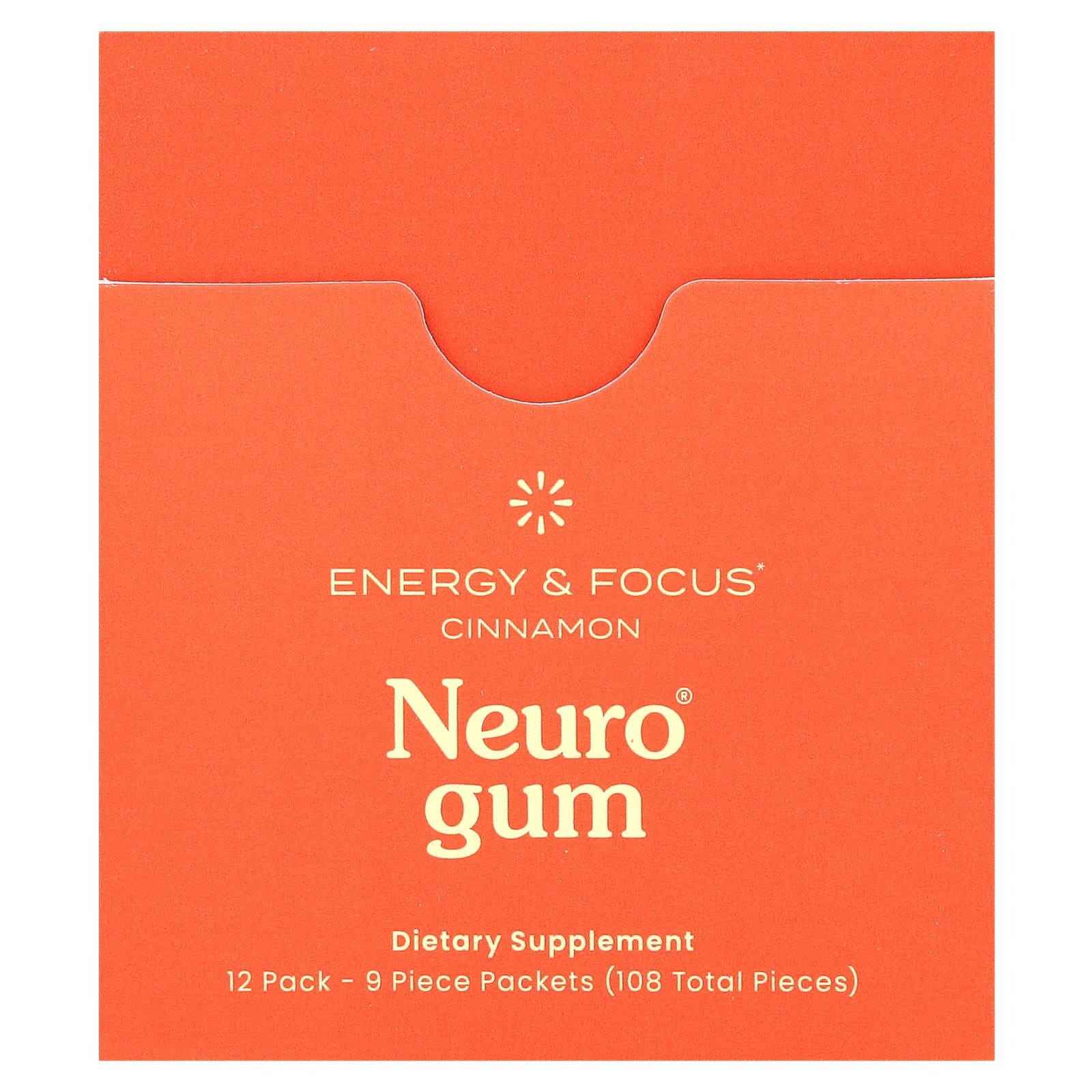 Buy neuro energy and focus gum, Power your mind and body with NeuroGum – Energy & Focus™ in Cinnamon, a scientifically formulated nootropic gum designed to boost energy, enhance focus, and improve mental clarity—without the crash. This pack includes 12 portable packs, each containing 9 pieces of fast-acting, flavorful gum, perfect for on-the-go energy and cognitive support whenever you need it most.